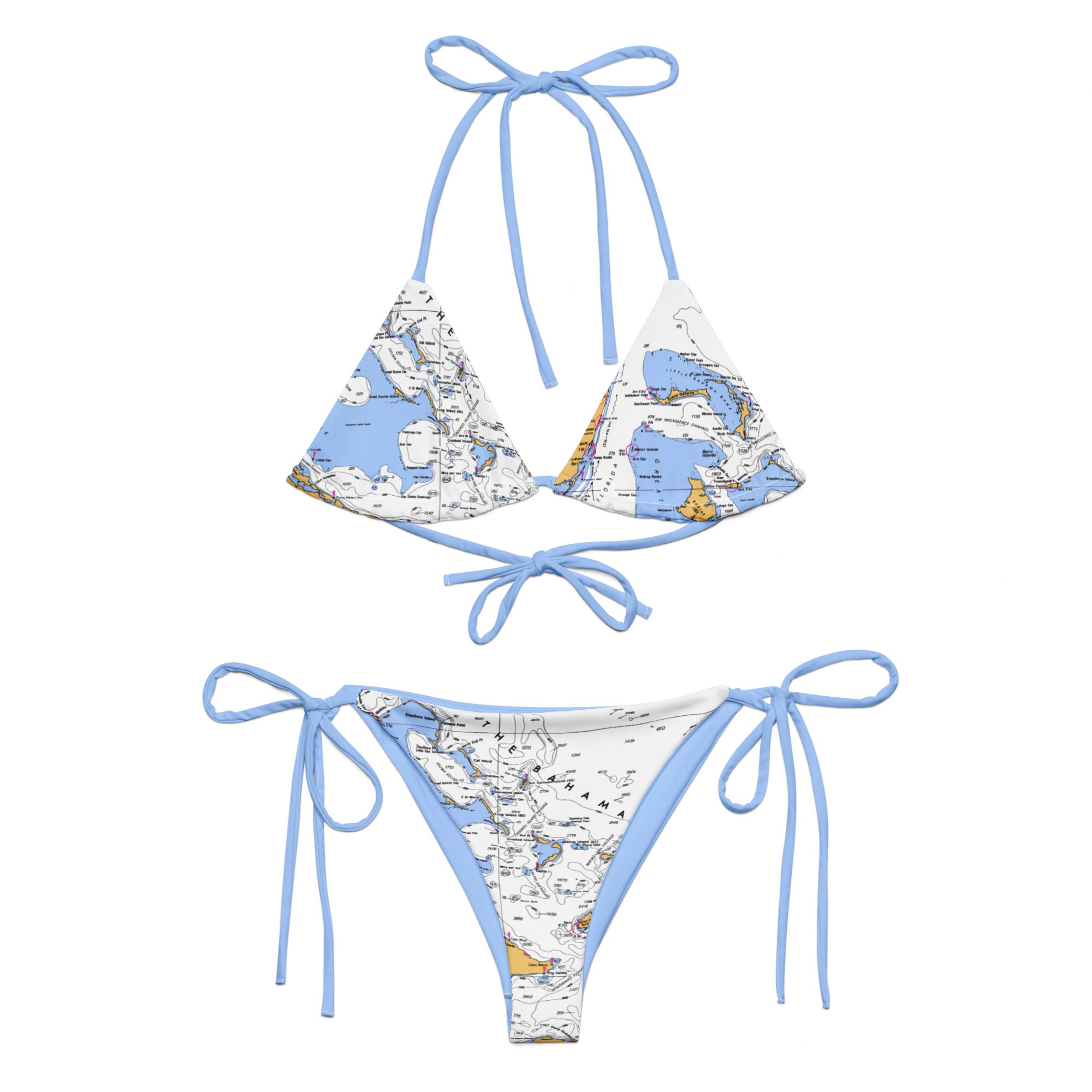 Stay comfortable and stylish all summer with this Bahamas Chart UPF 50+ String Bikini. Style the straps how you like, and get ready to swim!